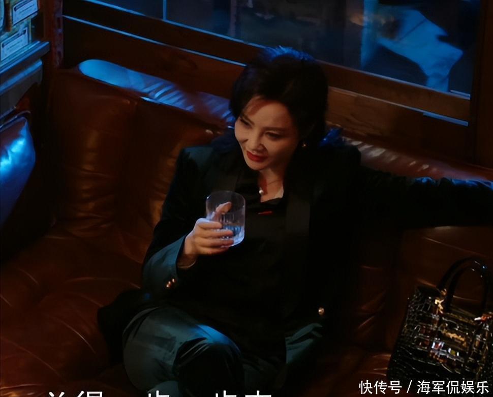 陶女士第一个画面扎了一个低马尾,画着红唇,但用胭脂也遮盖不住她的法令纹,已经有很明显的衰老了。第二个画面就是她坐在沙发上,手里拿着酒杯轻轻摇晃,穿着一件绿色高级西装外套。